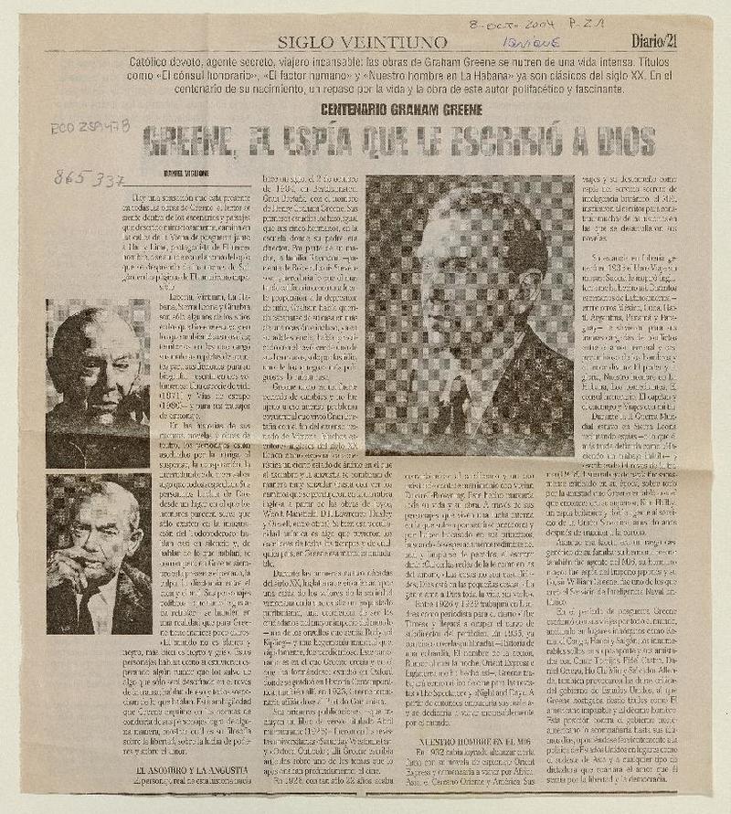 Centenario Graham Greene : Greene, el espía que le escribió a Dios [artículo] Daniel Viglione.