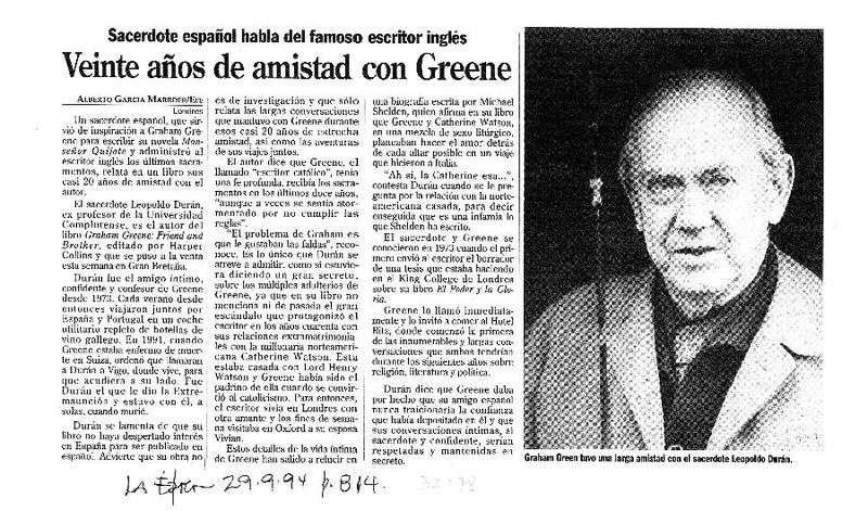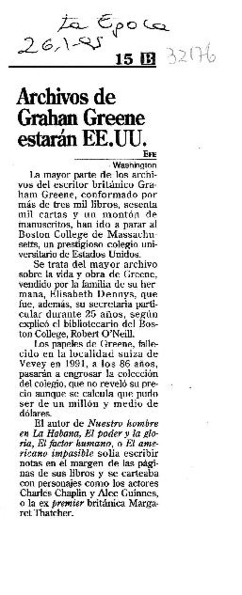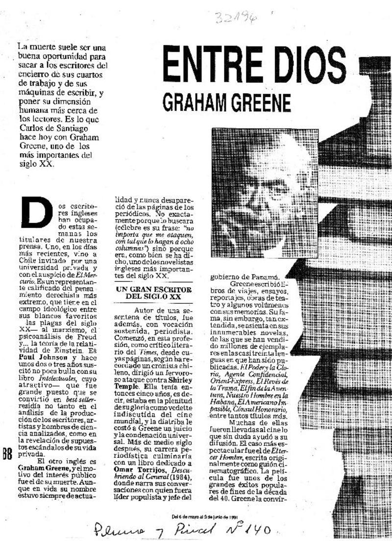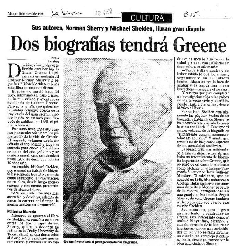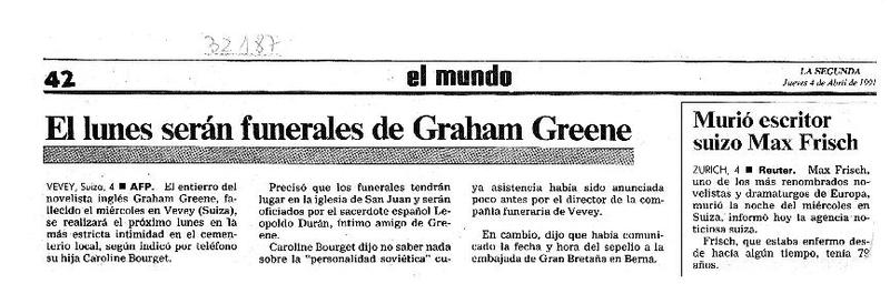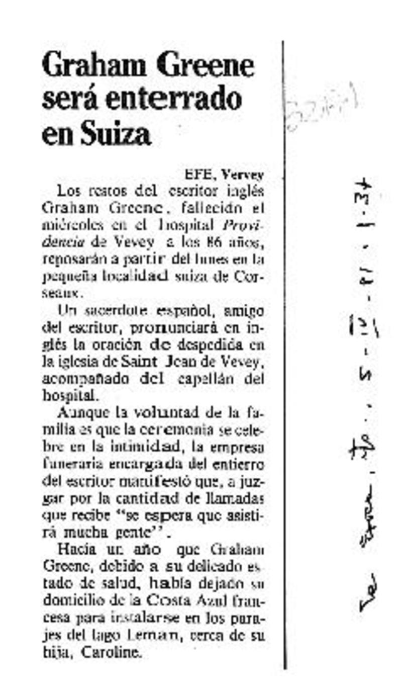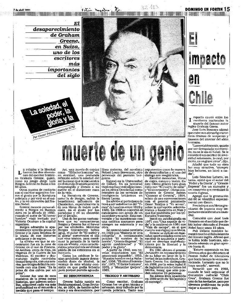 Murió escritor Graham Greene. [artículo] Leonardo Cáceres.