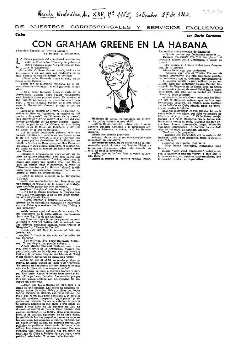 Con Graham Greene en La Habana [artículo] Darío Carmona.
