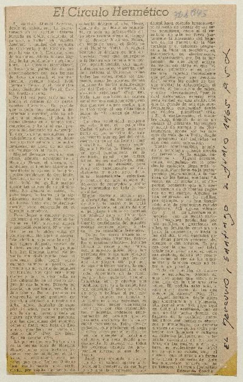 Autores chilenos - Serrano, Miguel - Hesse, Hermann - Jung, Carl Gustav - Círculo hermético, El. De Hesse a Jung