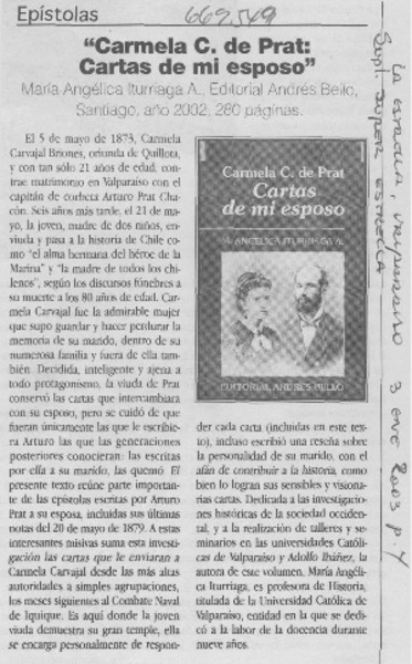 Cartas de mi esposo, Carmela Carvajal de Prat. [artículo]