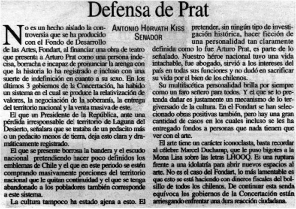 Defensa de Prat [artículo] Antonio Horvath Kiss.