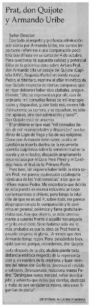 Prat, don Quijote y Armando Uribe [artículo] Cristóbal Alliende Piwonka.