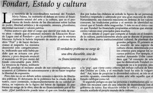 Fondart, Estado y cultura. [artículo]