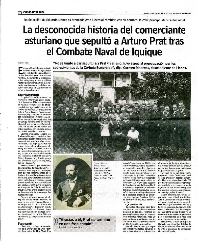 La desconocida historia del comerciante asturiano que sepultó a Arturo Prat tras el Combate Naval de Iquque [entrevista] [artículo] : Teresa Vera.