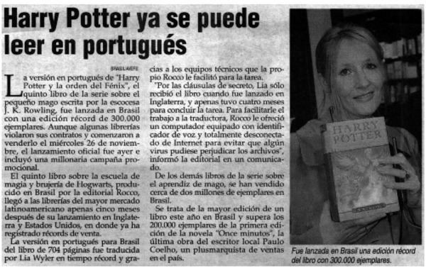 Harry Potter ya se puede leer en portugés [artículo] María Loreto Correa.