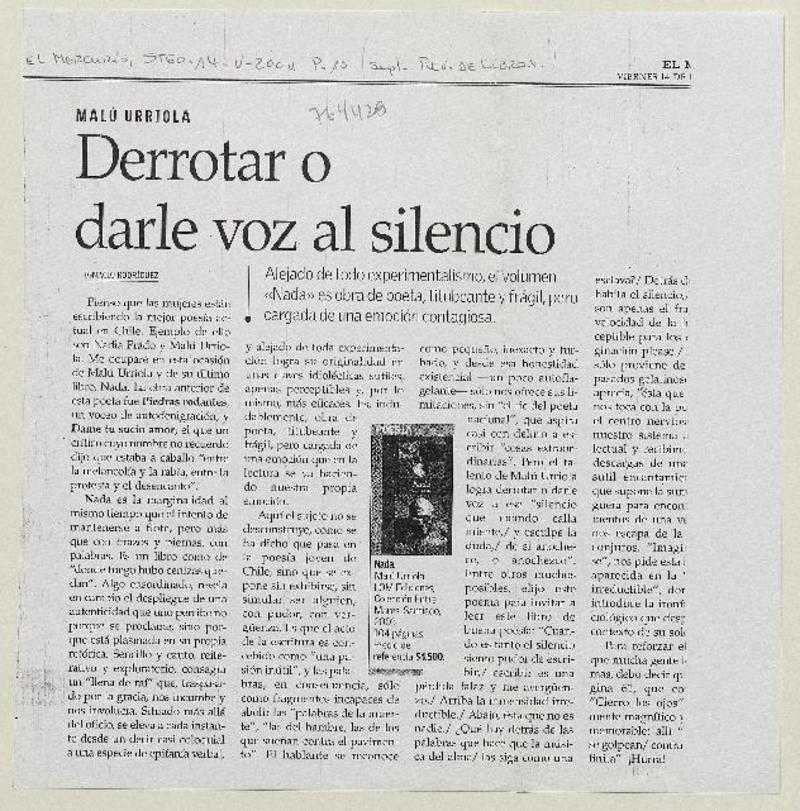 Derrotar o darle voz al silencio [artículo] Ignacio Rodríguez.