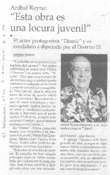 Aníbal Reyna: "esta obra es una locura juvenil". [artículo] Verónica Marinao