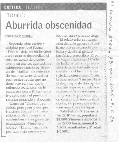 Aburrida obscenidad [artículo] Pedro Labra Herrera
