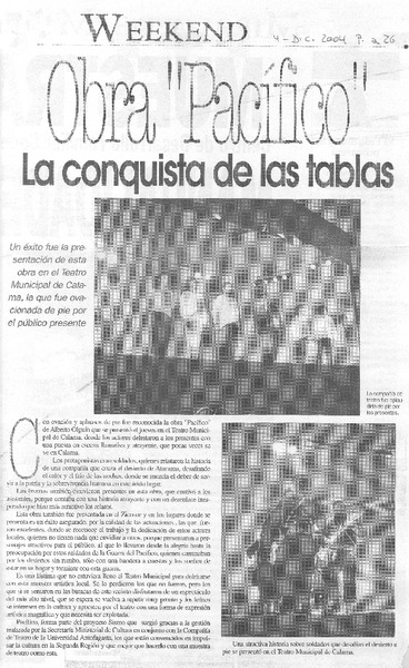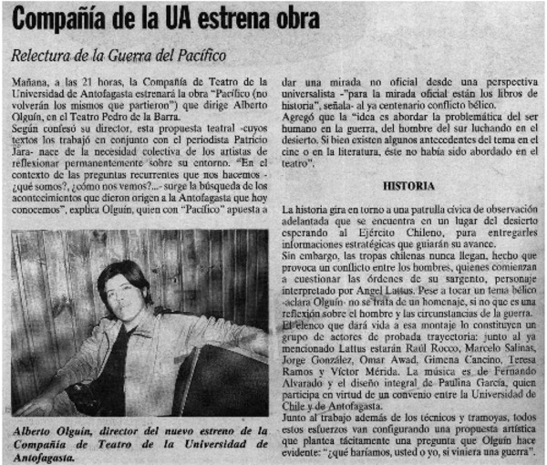 Aplaudida obra "Pacífico" sale a recorrer la región [artículo]