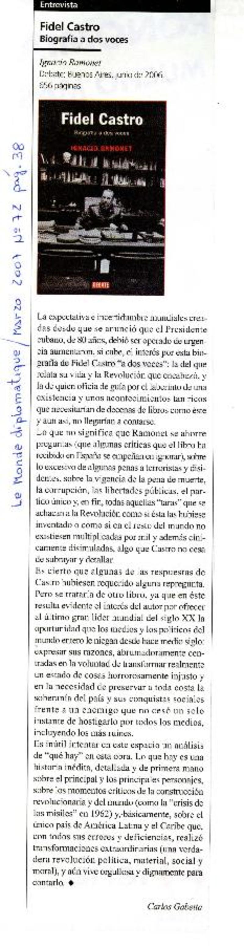 Fidel Castro, biografía a dos voces [artículo] Carlos Gabetta.
