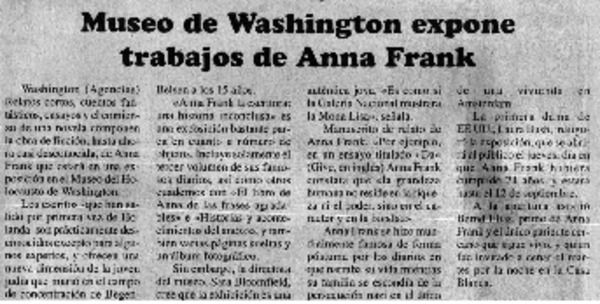 Museo de Washington expone trabajos de Anna Frank. [artículo]