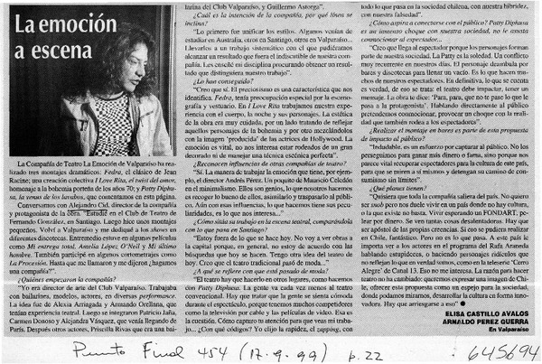 La emoción a escena [artículo] Elisa Castillo Ávalos <y> Arnaldo Pérez Guerra