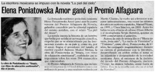 Poniatowska ganó IV Premio Alfaguara. [artículo]