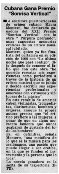 Cubana gana premio "Sonrisa vertical" [artículo] EFE.