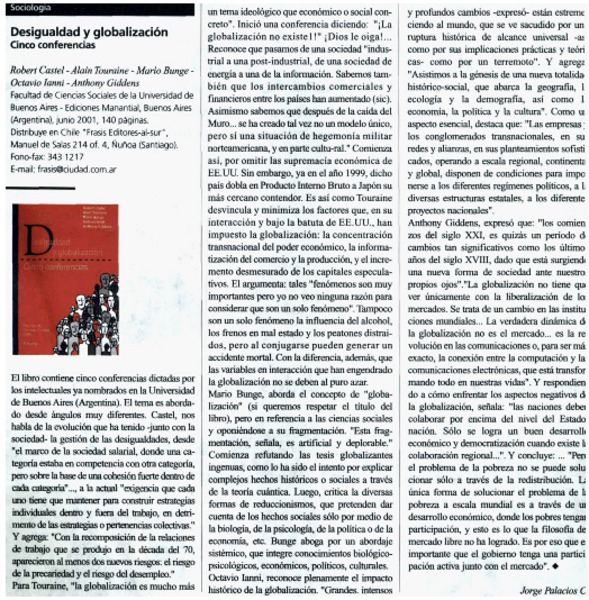 Desigualdad y globalización, cinco conferencias [artículo] Jorge Palacios C.
