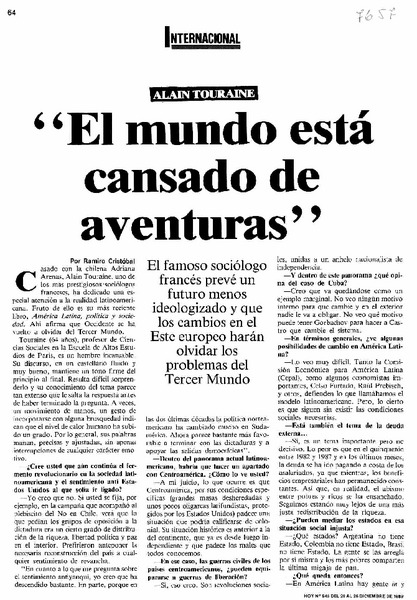 El mundo está cansado de aventuras" [artículo] Alain Touraine.
