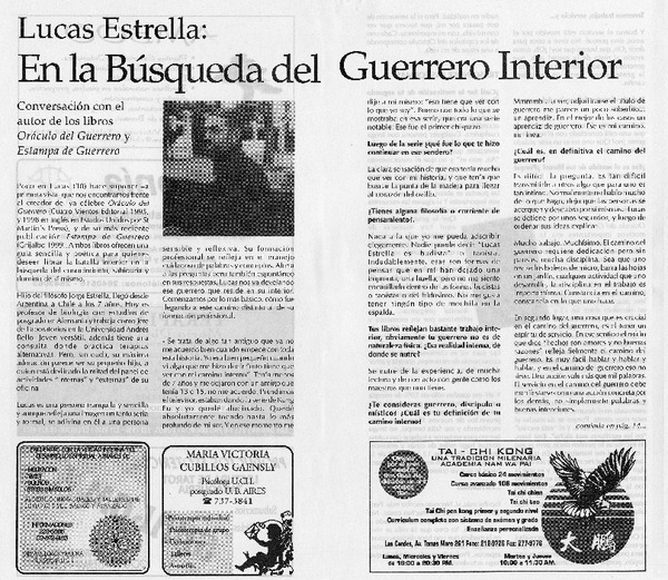 Lucas Estrella: en la búsqueda del guerrero interior : [entrevistas] [artículo]
