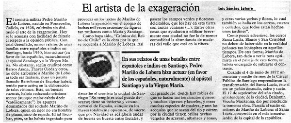 El artista de la exageración [artículo] Luis Sánchez Latorre.
