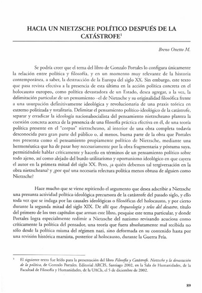 Hacia un Nietzsche político después de la catástrofe [artículo] Breno Onetto M.