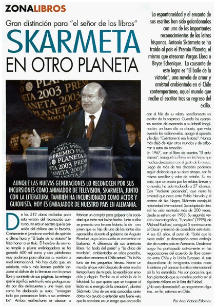 Gran distinción para "el señor de los libros" Skarmeta en otro Planeta [artículo] Ana Victoria Esfornos.
