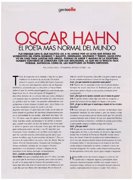 Oscar Hahn, el poeta mas normal del mundo [artículo] Carola Solari.