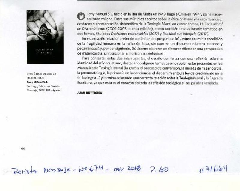 Autores chilenos - Mifsud, Tony - Una Ética desde la fragilidad