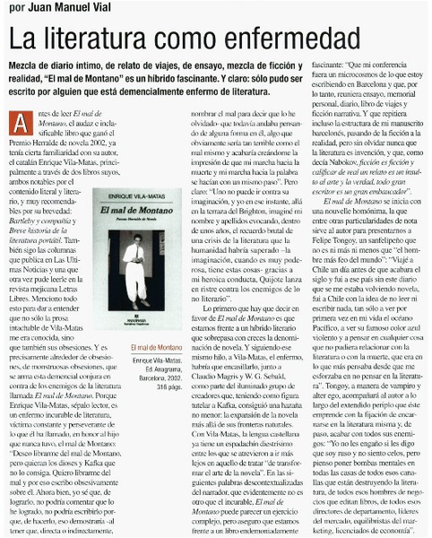 La literatura como enfermedad [artículo] Juan Manuel Vial.