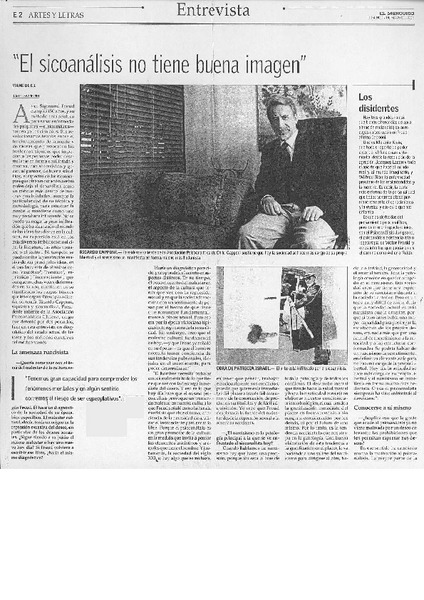 El sicoanálisis no tiene buena imagen : [entrevista] [artículo] Daniel Swinburn.