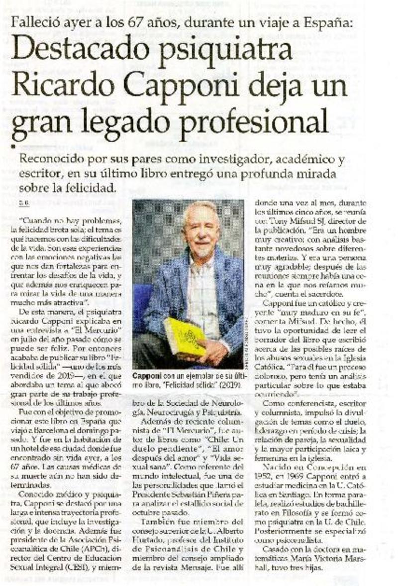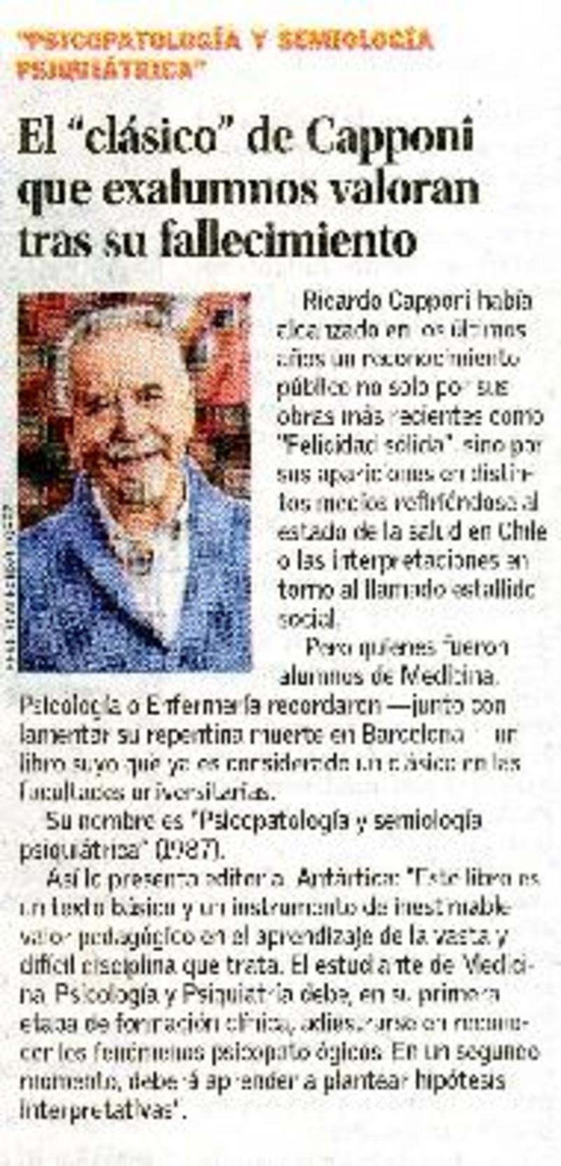 Destacado psiquiatra Ricardo Capponi deja un gran legado profesional [artículo] C. G.