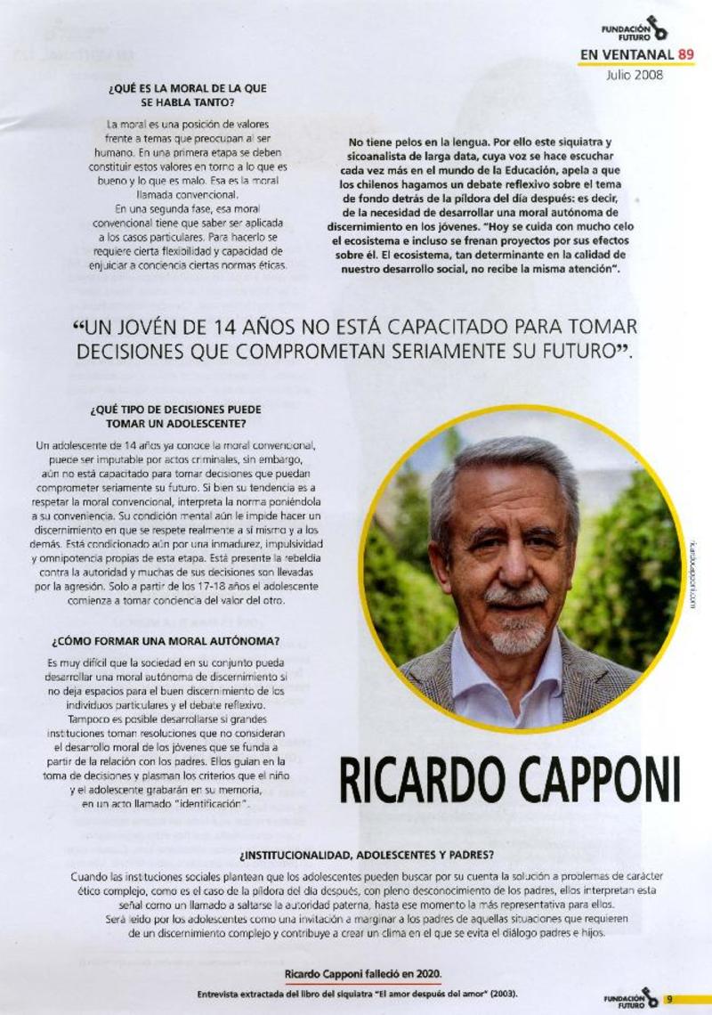 Ricardo Capponi, "Un joven de 14 años no está capacitado para tomar decisiones que comprometan seriamente su futuro" [entrevista]. [artículo] :