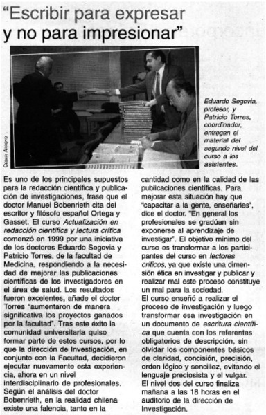 Escribir para expresar y no para impresionar". [artículo]
