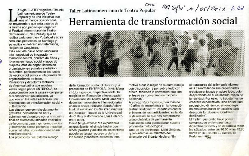Entepola lleva teatro al gratín a comunas pop. [artículo].