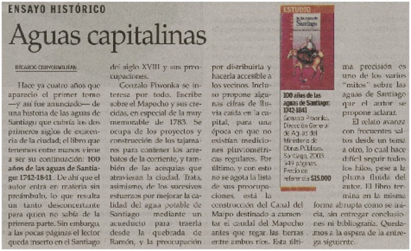 Autores chilenos - Piwonka Figueroa, Gonzalo - 100 años de las aguas de Santiago: 1742-1841