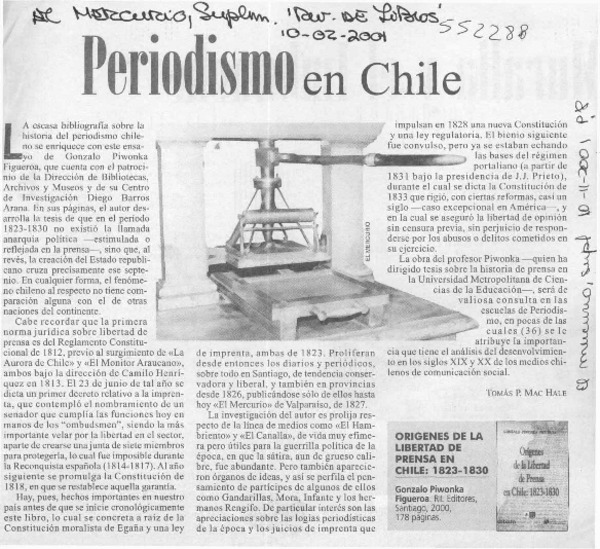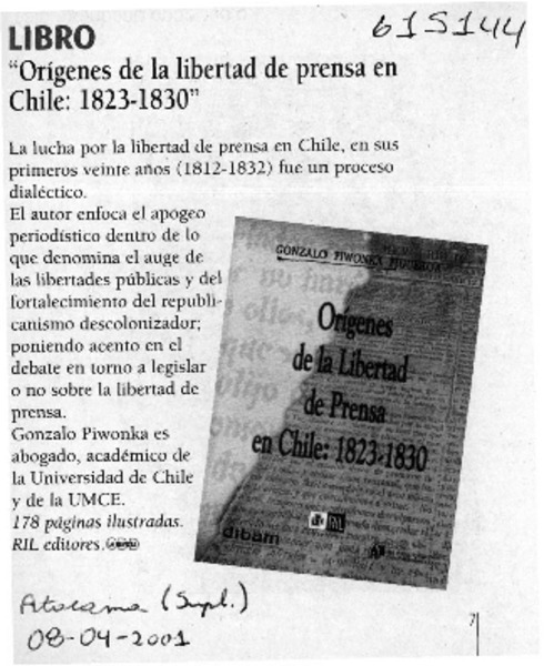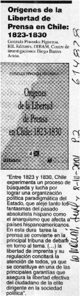 Orígenes de la libertad de prensa en Chile, 1823-1830 - Piwonka Figueroa, Gonzalo - Autores chilenos