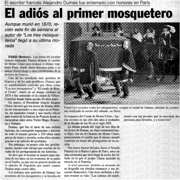 El adiós al primer mosquetero. [artículo]