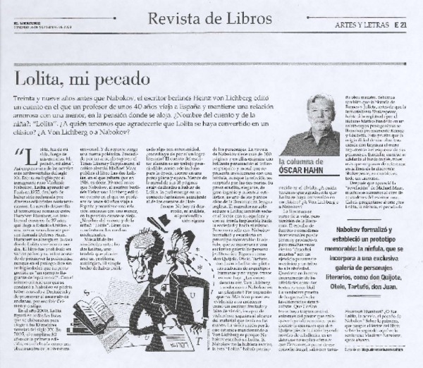 Lolita, mi pecado [artículo] Óscar Hahn.