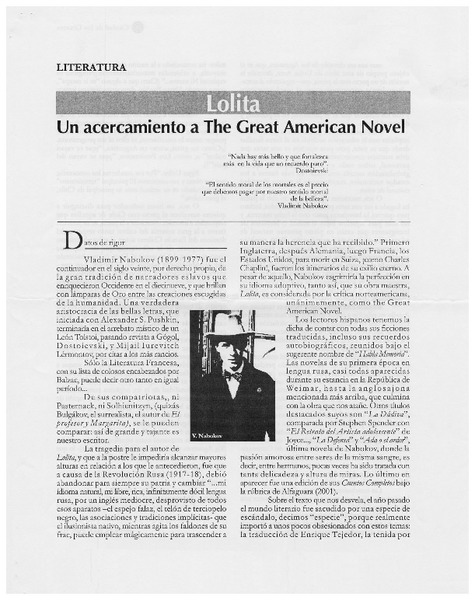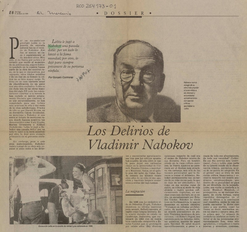 Los delirios de Vladimir Nabokov [artículo] Gonzalo Contreras.