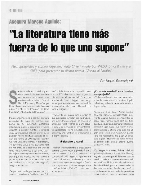 La literatura tiene más fuerza de lo que uno supone" [artículo] Miguel Borzntzky W.