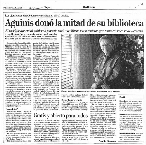 Aguinis donó la mitad de su biblioteca [artículo] Amalia Eizayaga.