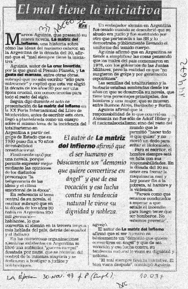 El mal tiene la iniciativa. [artículo]