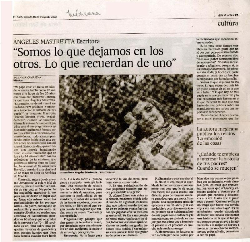 Angeles Mastretta habla "Con desparpajo de la intimidad" [artículo] Ximena Poo.
