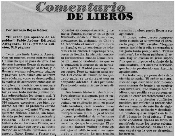 Comentario de libros [artículo] Antonio Rojas Gómez.