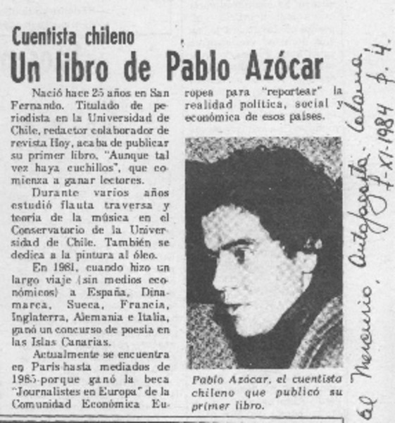 Autores chilenos - Azócar, Pablo - "Aunque tal vez haya cuchillos"