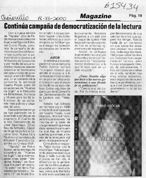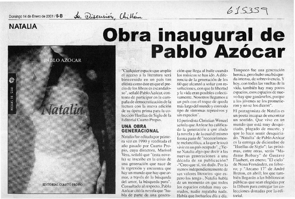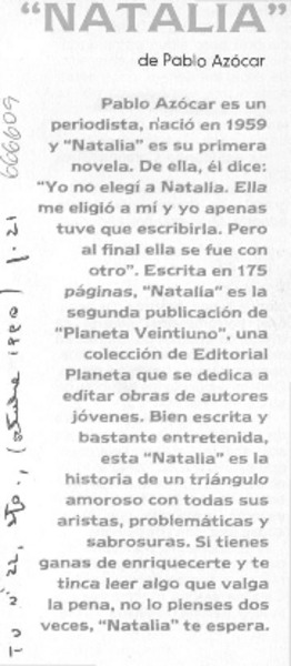 Autores chilenos - Entrevistas - Azócar, Pablo - Natalia