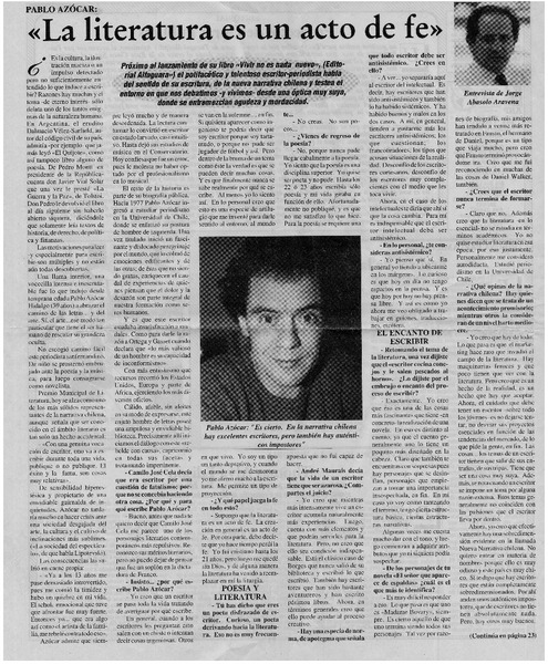 "La literatura es un acto de fe" [artículo] Jorge Abasolo Aravena.