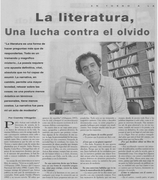 La literatura, una lucha contra el olvido [artículo] Camila Villagrán.