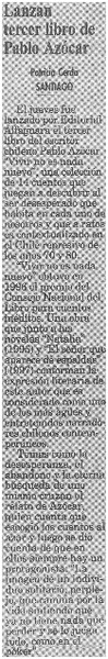 Lanzan tercer libro de Pablo Azócar [artículo].