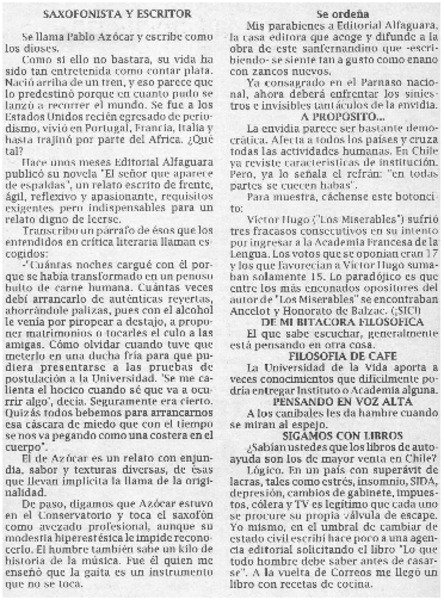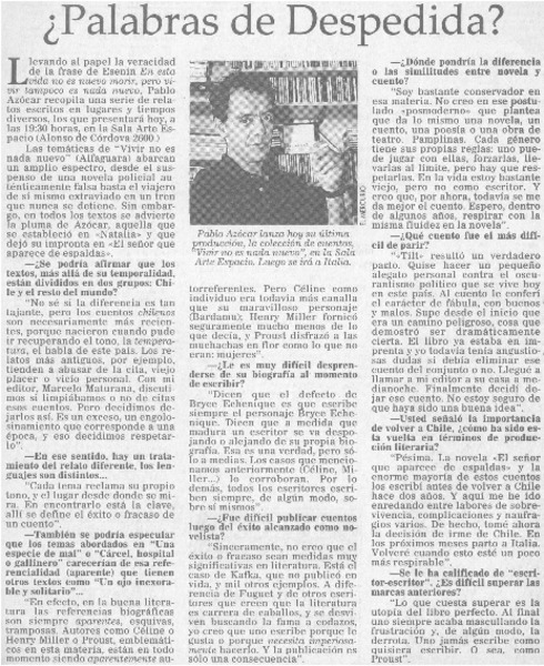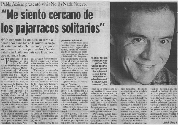 Autores chilenos - Entrevistas - Azócar, Pablo - Vivir no es nada nuevo