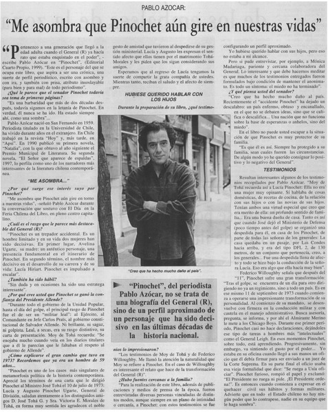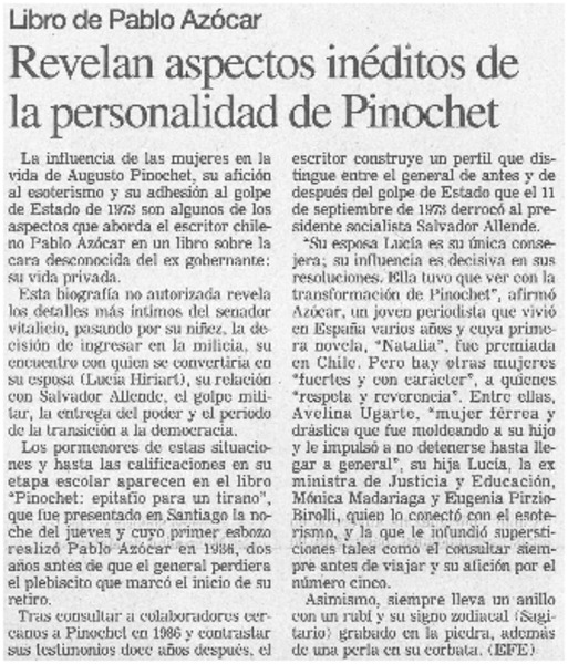 Revelan aspectos inéditos de la personalidad de Pinochet [artículo].